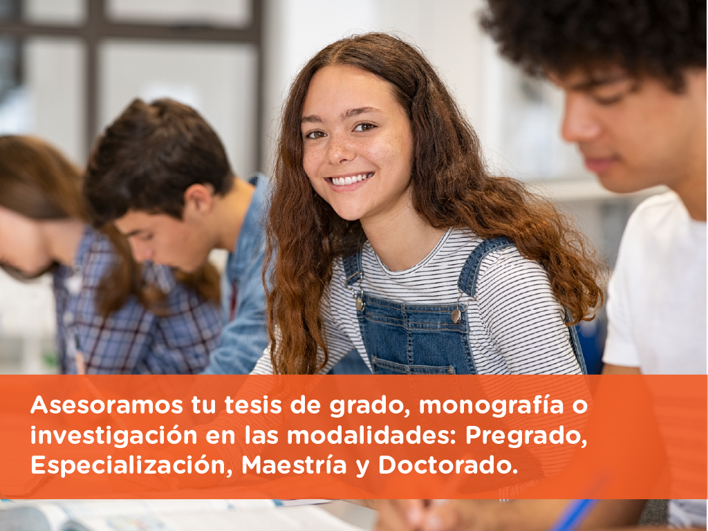Potencia tu camino académico con nuestra asesoría en tesis para pregrado y posgrado. Nuestro equipo de expertos en investigación está comprometido en guiarte hacia el éxito académico. Disfruta de beneficios como orientación personalizada en la elección del tema, asistencia en la metodología de investigación, y revisión exhaustiva de tu trabajo para garantizar la calidad. Te ofrecemos el respaldo necesario para superar los desafíos de la elaboración de tesis, permitiéndote concentrarte en el contenido esencial. Con nosotros, no solo completas tu tesis, sino que la elevas a un nivel de excelencia. Atrévete a destacar en tu investigación académica con nuestra experiencia a tu disposición